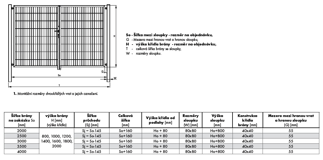 Dvojkrídlovú brána výšky 80cm je vhodná k plotovým panelom GAMA 2D rovnakej výšky.